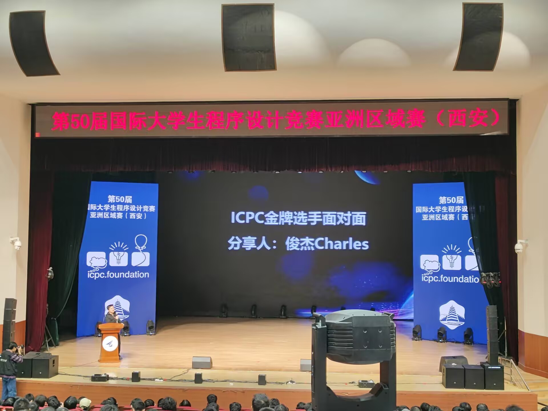 吃完饭回酒店休息了一会,又去到翱翔学生活动中心参加俊杰哥哥的技术讲座,可惜没有抽到奖,紧接着是开幕式,主持人姐姐宣布了西安是全国乃至全世界最早开赛的赛站(后面又知道她已经主持好几届西安站了,貌似还和哈威的老学长认识)