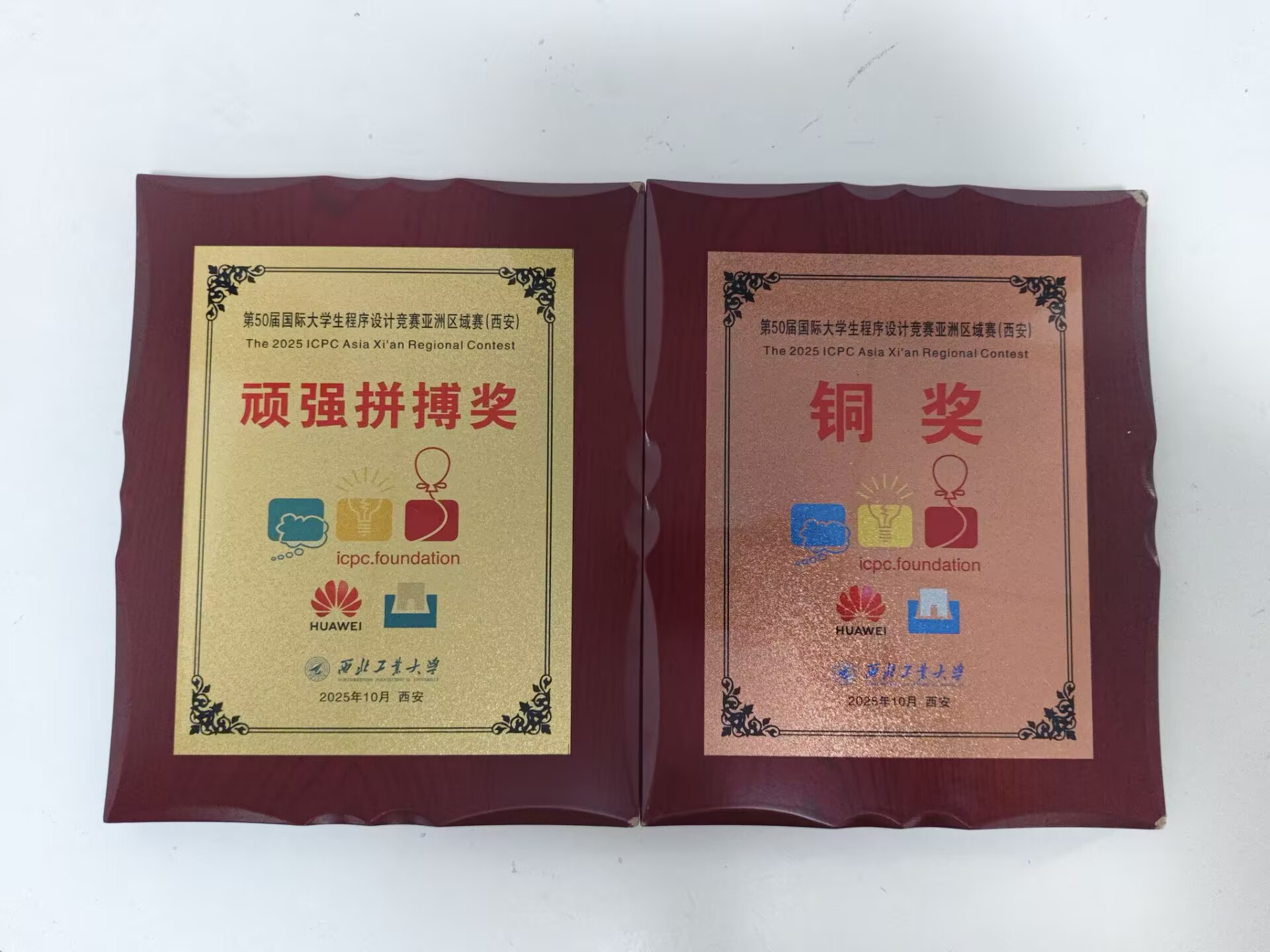 早上联系了西工大的赛事负责人刘君瑞老师,老师说技术组提交的名单里我们好像确实是铜牌最后一名,领导审核后会发布最终获奖名单,不会冤枉我们,此时感觉几乎已经稳了,心中狂喜:这能翻盘?下午群里发了正式榜单,真没想到我们这还翻盘了,感觉像做梦一样,询问刘老师我们实体奖牌的问题,说我们学校另一支队伍的顽强拼搏奖错发给了别的队,到时会和我们队的铜奖奖牌一起邮寄过来,还发现她和我们学校的教练是老朋友,说希望这次比赛出的问题不会让我们教练生气,感觉刘老师是个超级有趣又和蔼的老师,至此,尘埃落定。