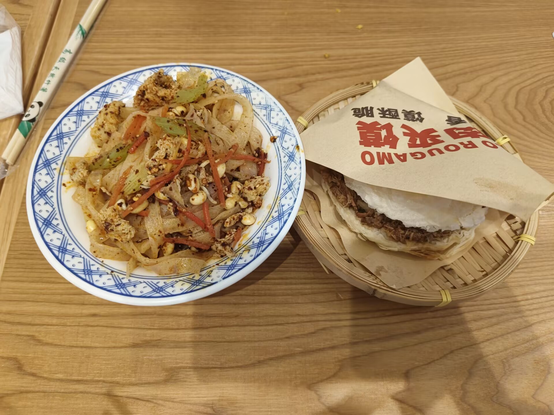 下车后来到了西安大融城,进去后三个人像刘姥姥进了大观园,最后我吃了肉夹馍和岐山擀面皮(和凉皮差不多),队友吃了炸酱面和臊子面