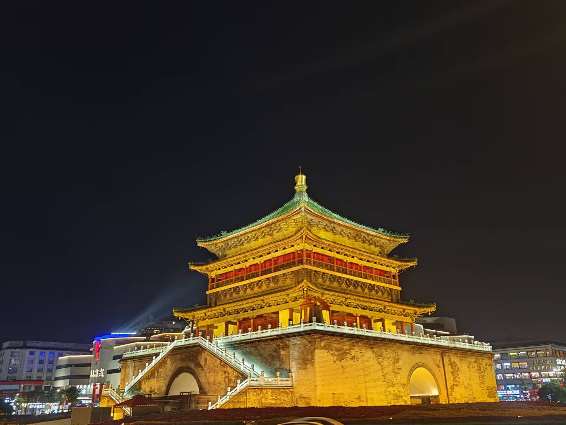 吃完后坐地铁到钟楼站(是我第一次坐地铁,都怪威海没地铁),出来看了眼钟楼和鼓楼,就又回地铁站坐车到了西安南站,出站发现一片荒凉,又打网约车到网上订的西工大附近的酒店,路上越走越偏,感觉回到了村里,到最后一段路才稍显繁华了一点,到酒店就睡了